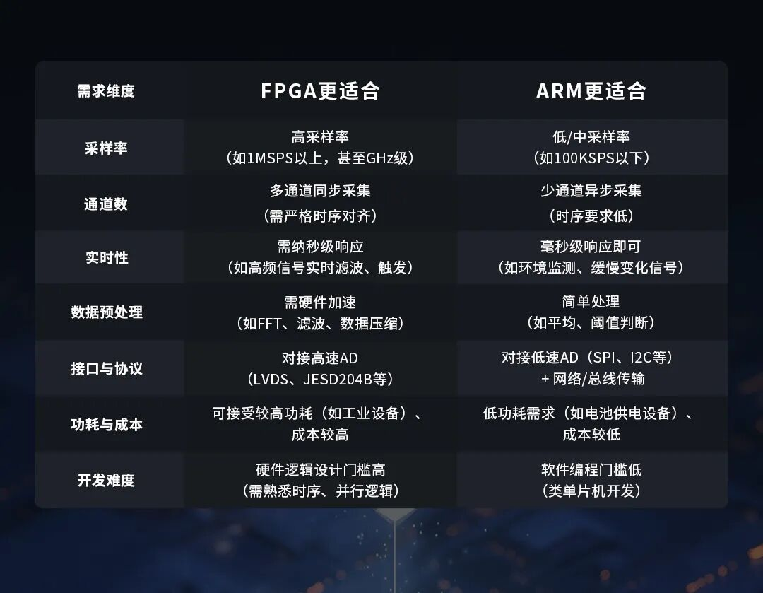 直接說結(jié)論:在選擇FPGA和ARM處理器進(jìn)行AD數(shù)據(jù)采集時,沒有絕對的“更好”,需根據(jù)具體應(yīng)用場景的需求來判斷。以下從核心差異、適用場景、優(yōu)缺點(diǎn)等方面對比分析,幫助大家選擇更合適方案。??▍核心差異:...