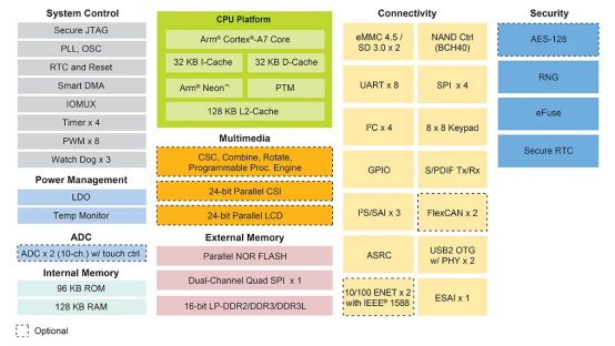 圖 1 i.MX 6ULL處理器功能框圖