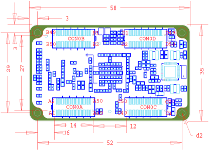 圖 6 核心板機械尺寸圖(頂層透視圖)