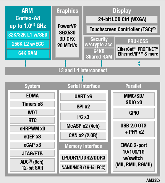 AM335x最高支持分辨率2048x2048,且擁有3D圖形加速器。