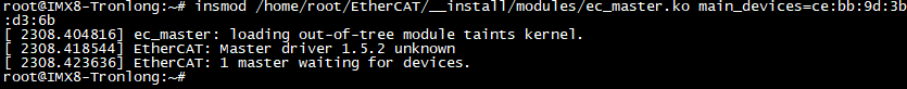 Target# insmod /home/root/EtherCAT/__install/modules/ec_master.ko main_devices=ce:bb:9d:3b:d3:6b