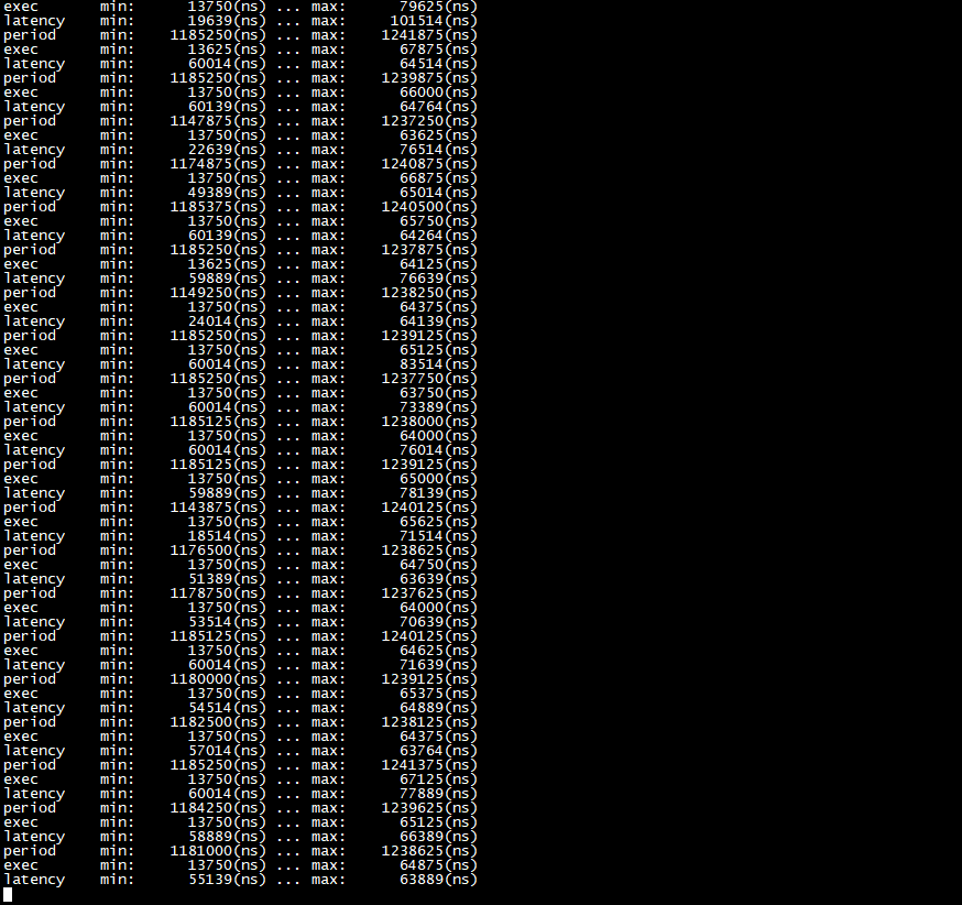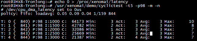 Target# /usr/xenomai/demo/cyclictest -t5 -p98 -m -n