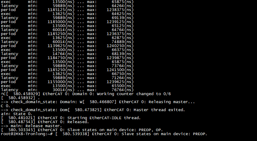 備注:案例設置EtherCAT周期為1.1ms,同時串口循環(huán)打印EtherCAT周期的最小值和最大值。