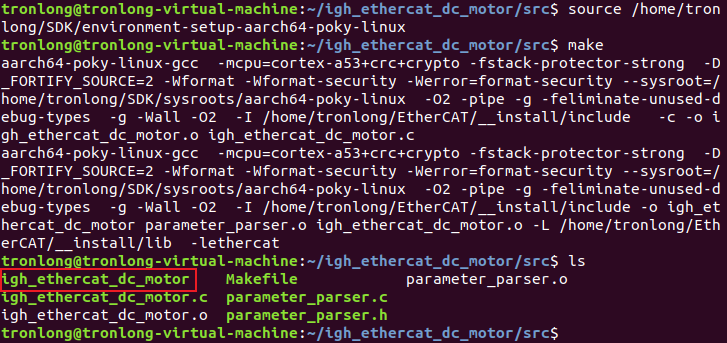 igh_ethercat_dc_motor案例的編譯需基于IgH EtherCAT主站程序,請先編譯IgH EtherCAT主站程序。