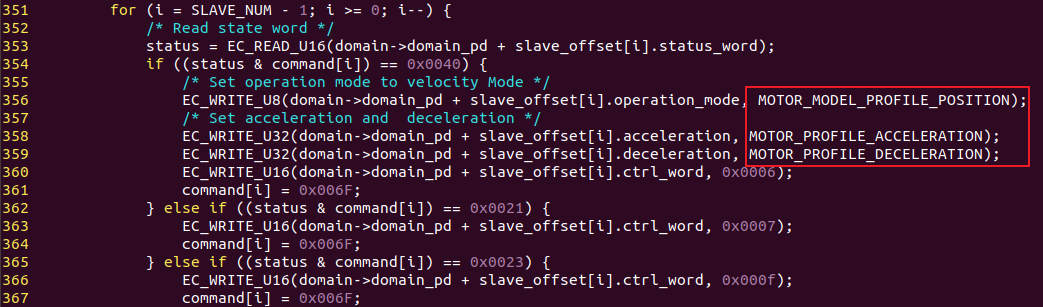 8.在周期任務中設置驅(qū)動器操作模式、加速度和減速度,分別發(fā)送0x6、0x7、0xF使驅(qū)動器處于ON狀態(tài)。