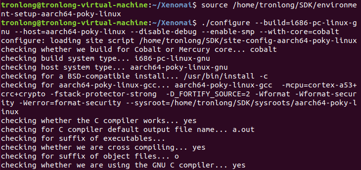 Host# ./configure --build=i686-pc-linux-gnu --host=aarch64-poky-linux --disable-debug --enable-smp --with-core=cobalt