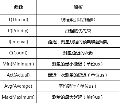 表 1 Cyclictest測試結(jié)果說明