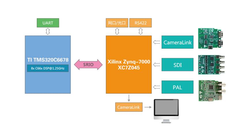 隨著現(xiàn)代科技的高速發(fā)展,機(jī)器視覺技術(shù)在無人機(jī)、安防監(jiān)控、工業(yè)檢測(cè)、ADAS高級(jí)駕駛輔助系統(tǒng)、醫(yī)療診斷等方面有著廣泛的應(yīng)用,并且更多的場(chǎng)合中要求能實(shí)現(xiàn)高算力、高速采集、高速傳輸。目標(biāo)追蹤的視覺技術(shù)是計(jì)算機(jī)視覺領(lǐng)域的一個(gè)重要分支課題,有著重要的研究意義。本文主要介紹基于TI C6678+ Xilinx Zynq-7045/7100的目標(biāo)追蹤視覺方案。