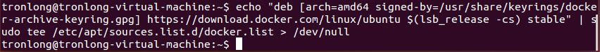 Host# echo "deb [arch=amd64 signed-by=/usr/share/keyrings/docker-archive-keyring.gpg] https://download.docker.com/linux/ubuntu $(lsb_release -cs) stable" | sudo tee /etc/apt/sources.list.d/docker.list > /dev/null