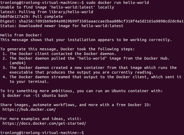 Host# sudo docker run hello-world