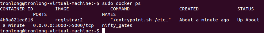 Host# sudo docker run -d -p 5000:5000 -v /home/tronlong/docker/myregistry:/var/lib/registry registry:2