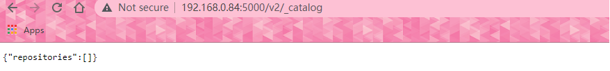 通過(guò)瀏覽器訪問(wèn)“http://192.168.0.84:5000/v2/_catalog”,即可看到當(dāng)前倉(cāng)庫(kù)里已有的鏡像。