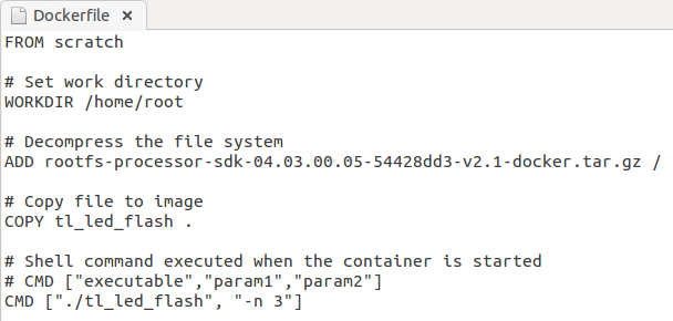 COPY tl_led_flash .#拷貝可執(zhí)行文件至鏡像的"/home/root/"目錄下