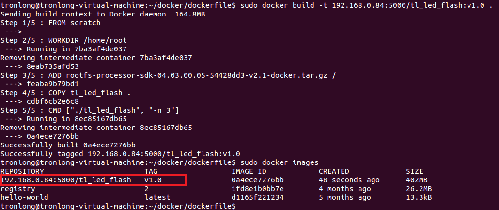 Host# sudo docker build -t 192.168.0.84:5000/tl_led_flash:v1.0 .//注意命令最后含有“.”