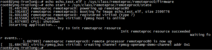 Target# echo echo_test.elf > /sys/class/remoteproc/remoteproc0/firmware