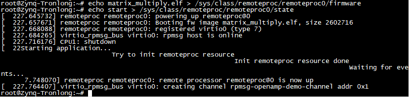 Target# echo matrix_multiply.elf > /sys/class/remoteproc/remoteproc0/firmware