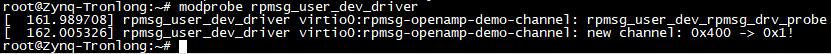 Target# modprobe rpmsg_user_dev_driver