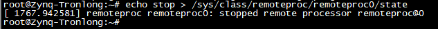 Target# echo stop > /sys/class/remoteproc/remoteproc0/state