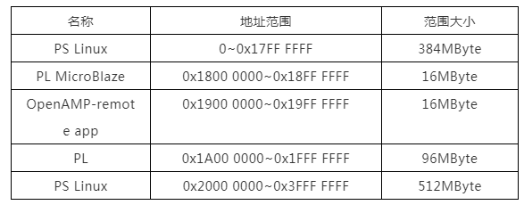 1GByte DDR容量版本核心板的內(nèi)存地址分配如下: