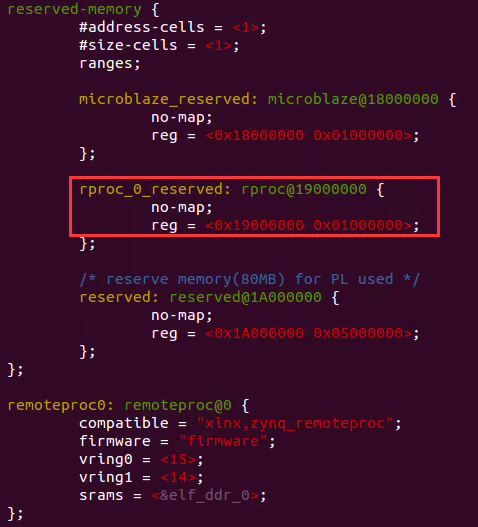 如需修改CPU1程序(OpenAMP-remote app)內(nèi)存地址空間范圍,可通過更改設(shè)備樹文件tlz7x-easyevm-s.dts、資源表rsc_table.c及鏈接文件lscript.ld對內(nèi)存地址空間進行重新分配。三者需同步修改并保持一致,以確保固件程序鏈接地址與設(shè)備樹配置的elf_ddr_0對應(yīng)。所使用的資源(內(nèi)存和virtio設(shè)備資源)不能超出設(shè)備樹文件配置的內(nèi)存范圍。