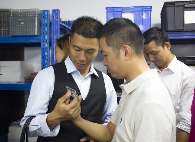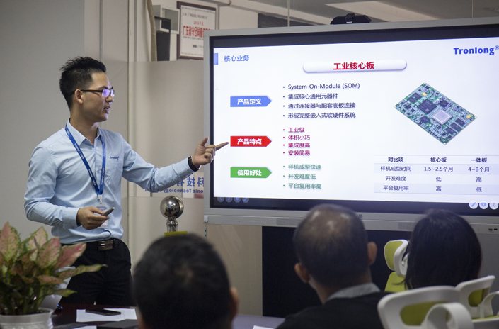 會議后,朱雅總經(jīng)理帶領(lǐng)校領(lǐng)導參觀了我司工作環(huán)境。下圖為向校領(lǐng)導介紹我司核心產(chǎn)品,多核異構(gòu)核心板SOM-TL138(OMAP-L138)。