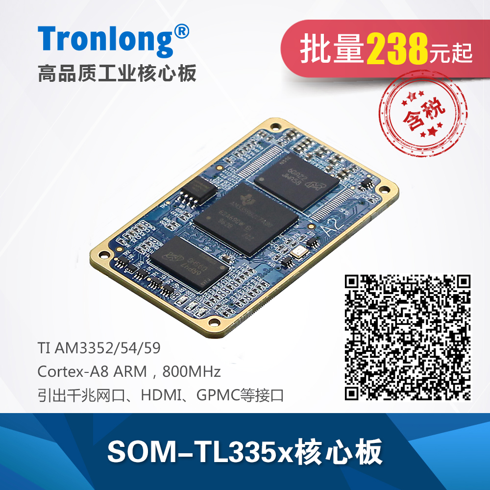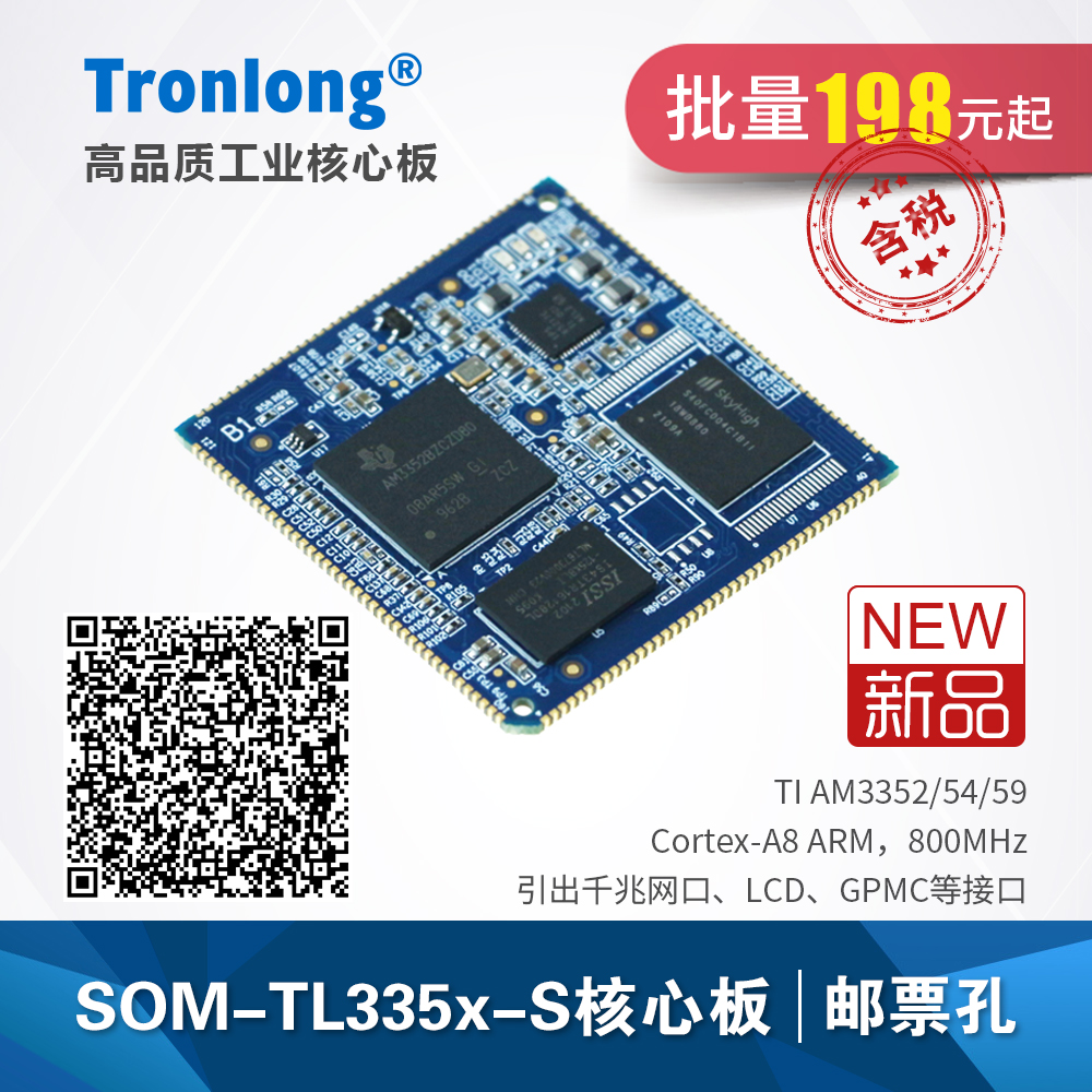 SOM-TL335x/SOM-TL335x-S是創(chuàng)龍科技基于TI Sitara系列AM3352/AM3354/AM3359 ARM Cortex-A8高性能低功耗處理器設(shè)計的低成本工業(yè)級核心板,主頻最高可達(dá)1GHz,通過工業(yè)級B2B連接器和郵票孔兩種連接方式引出豐富的外設(shè)資源,包括雙千兆網(wǎng)口、多路UART、LCD、GPMC、USB、I2C、SPI等接口。核心板經(jīng)過專業(yè)的PCB Layout和高低溫測試驗(yàn)證,穩(wěn)定可靠,可滿足各種工業(yè)應(yīng)用環(huán)境。
