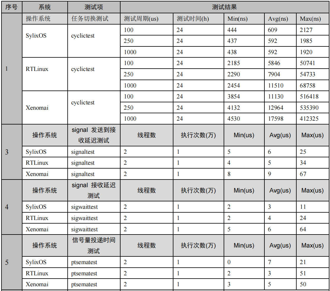 SylixOS、RT-Linux、Xenomai系統(tǒng)的實(shí)時(shí)性和抖動(dòng)官方對比數(shù)據(jù)如下圖所示。