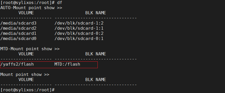 執(zhí)行df命令,可查看SPI FLASH的掛載路徑為YAFFS文件系統(tǒng)目錄。