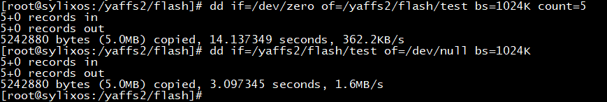 Target# dd if=/dev/zero of=/yaffs2/flash/test bs=1024K count=5