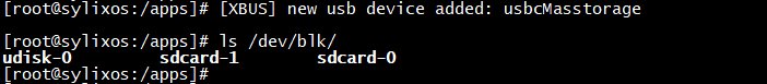 請將U盤插入評估板USB1 HOST或USB2 HOST接口,系統(tǒng)將識別U盤,并在“/dev/blk/”目錄下新生成U盤對應(yīng)的設(shè)備名。