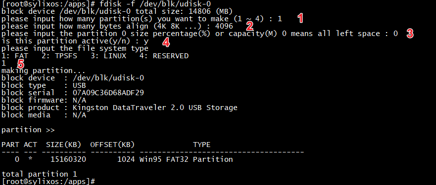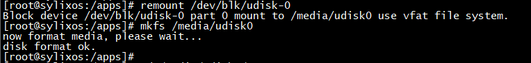 執(zhí)行如下命令重新掛載U盤,并對U盤分區(qū)進(jìn)行格式化。
