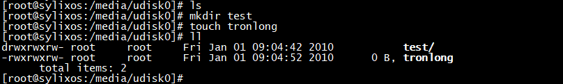 進(jìn)入U(xiǎn)盤掛載目錄,即可進(jìn)行文件的創(chuàng)建、讀寫操作。