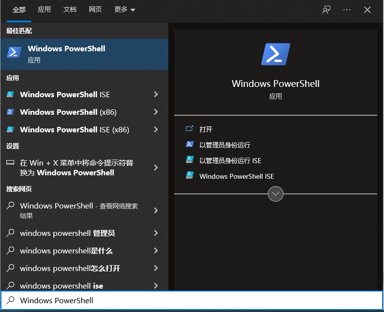 在PC機(jī)搜索Windows PowerShell,然后點(diǎn)擊打開Windows PowerShell終端。