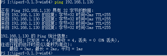 在Windows PowerShell終端進(jìn)入iperf-3.1.3-win64工具解壓目錄,執(zhí)行如下命令ping評估板IP地址。