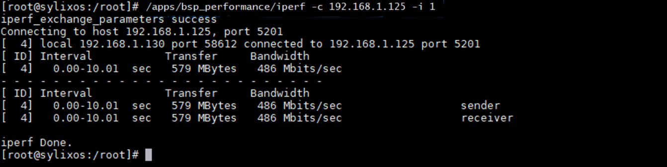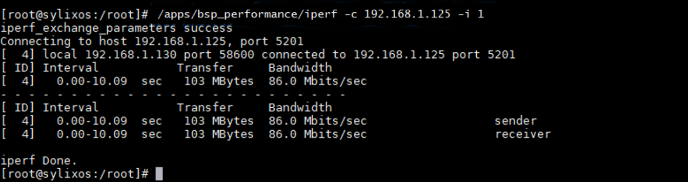 Target# /apps/bsp_performance/iperf -c 192.168.1.125 -i 1