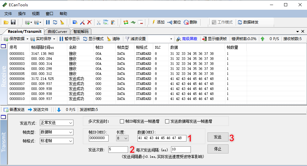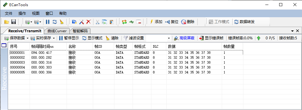 ECANTools軟件收到數(shù)據(jù)幀如下圖所示。