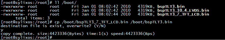 執(zhí)行如下命令,替換boot目錄下支持LCD顯示屏的SylixOS系統(tǒng)鏡像。