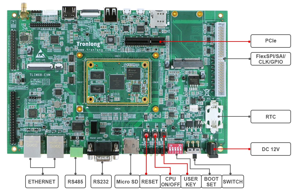 i.MX 8M Mini評估板引出豐富的外設(shè)接口,方便客戶更快評估核心板性能。
