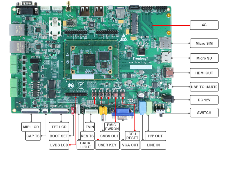圖 1 SOM-TLT3/A40i-B核心板資源圖