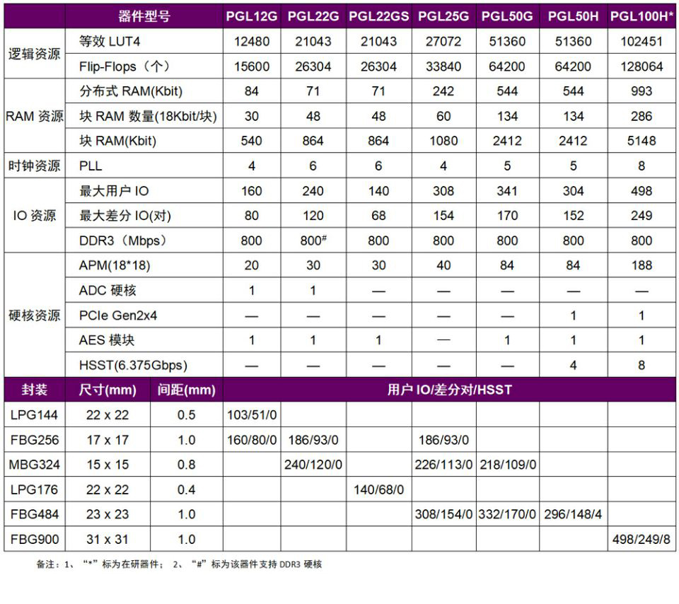 PGL50G:單端(101個),差分對(16對),共133個IO |