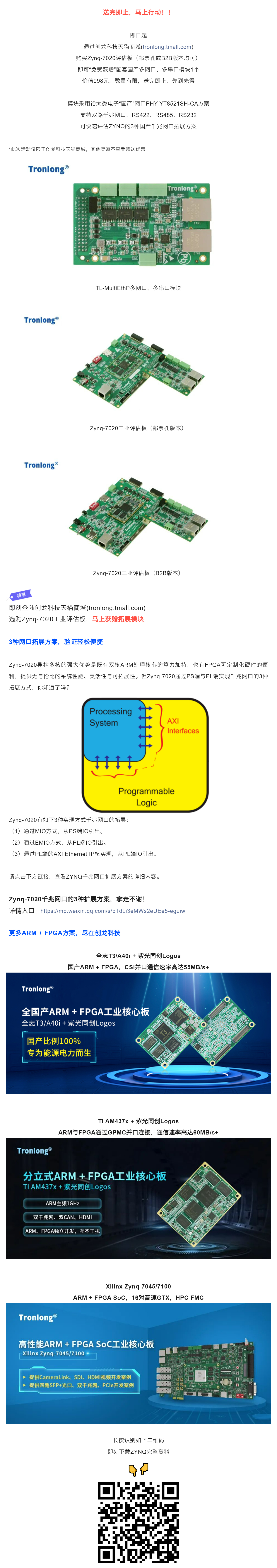 【送完即止】Zynq-7020國產(chǎn)多網(wǎng)口、多串口模塊“免費贈送”,價值998元