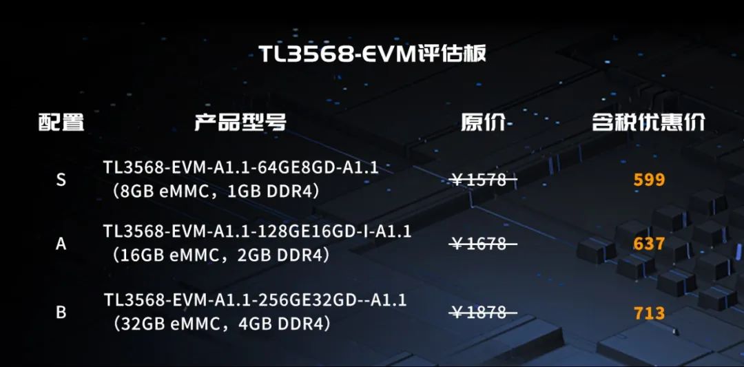 如下為參與優(yōu)惠活動的評估板詳細型號: