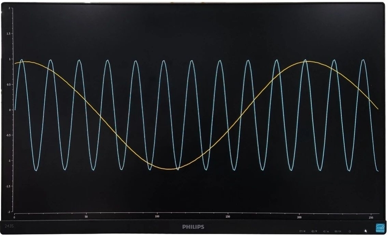 由上圖打印信息可知,讀取速率約為505MB/s,采樣率為200MSPS。同時,HDMI顯示屏將會實(shí)時顯示動態(tài)波形,如下圖所示。