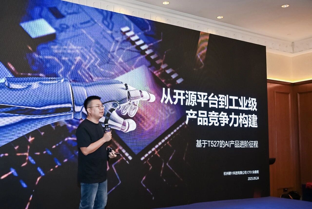杭州硬十科技有限公司CTO朱曉明 以《基于全志T527的機(jī)器人和AI產(chǎn)品進(jìn)階征程》為題,展現(xiàn)了由T527開源硬件開發(fā)板到邊緣算力網(wǎng)關(guān)、工業(yè)清潔機(jī)器人、無人機(jī)智能吊艙等工業(yè)人工智能應(yīng)用產(chǎn)品落地的路徑。