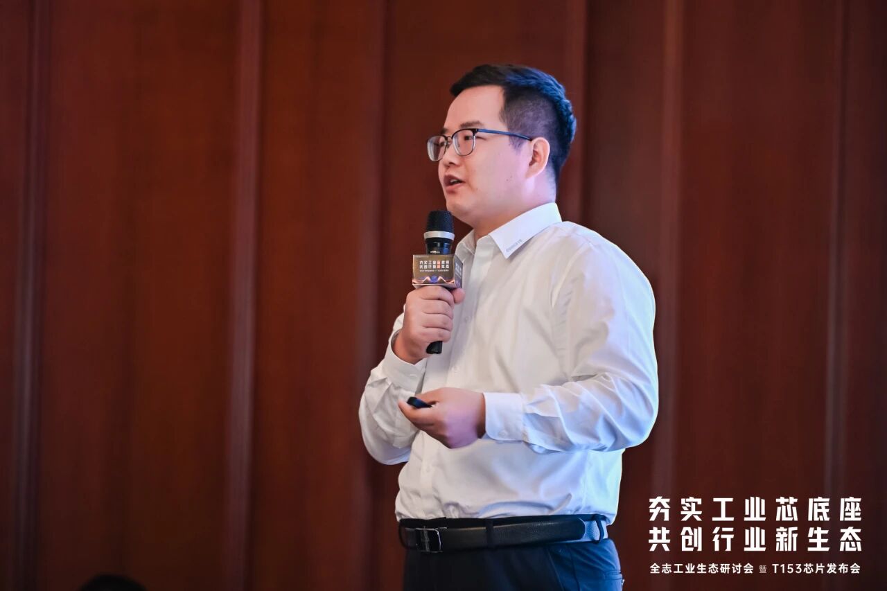 會議最后,全志科技方案運(yùn)營副總裁朱振華以《全志T153芯片發(fā)布:打造可靠工業(yè)芯》為題,以工業(yè)芯片產(chǎn)品布局介紹為引,正式發(fā)布全志工業(yè)2.0戰(zhàn)略下的新品 T153芯片。全志T153的推出將進(jìn)一步拓展全志在工業(yè)領(lǐng)域的產(chǎn)品生態(tài)布局,賦能更豐富的終端形態(tài),為構(gòu)建堅實(shí)、智能的工業(yè)底座注入全新動力。