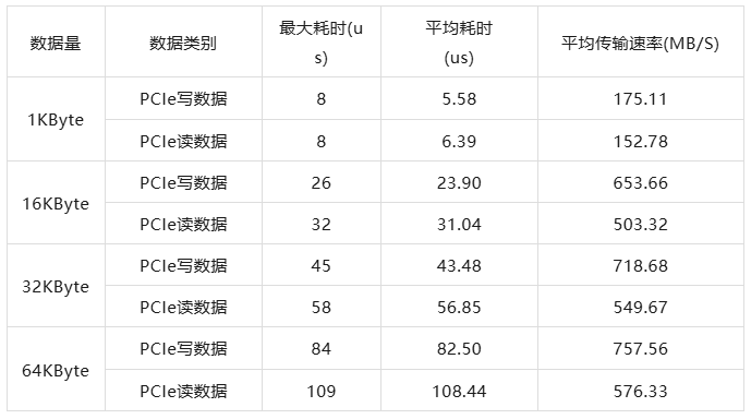 表 2 PCIe讀寫速率測試結(jié)果