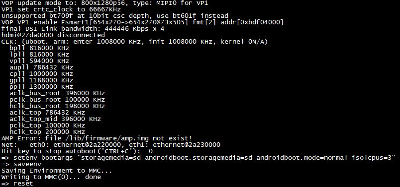 評估板上電啟動后,在U-Boot倒計時結(jié)束之前長按"Ctrl + C"鍵進(jìn)入U-Boot命令行模式,修改環(huán)境變量,隔離CPU3核心。