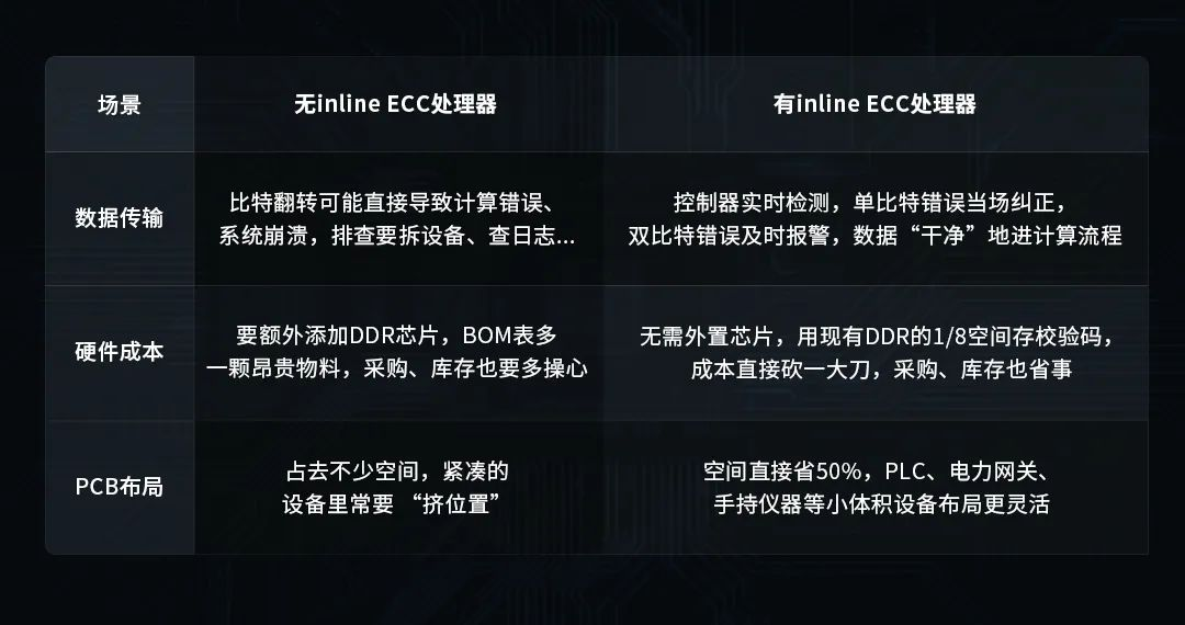 有沒有試過,設(shè)備突然宕機,查了3天才發(fā)現(xiàn)是DDR比特翻轉(zhuǎn)搞的鬼;PCB尺寸卡得死死的,多一顆芯片都沒地放;BOM成本要求一降再降,外置ECC DDR芯片卻成了“減不下去的負擔”……