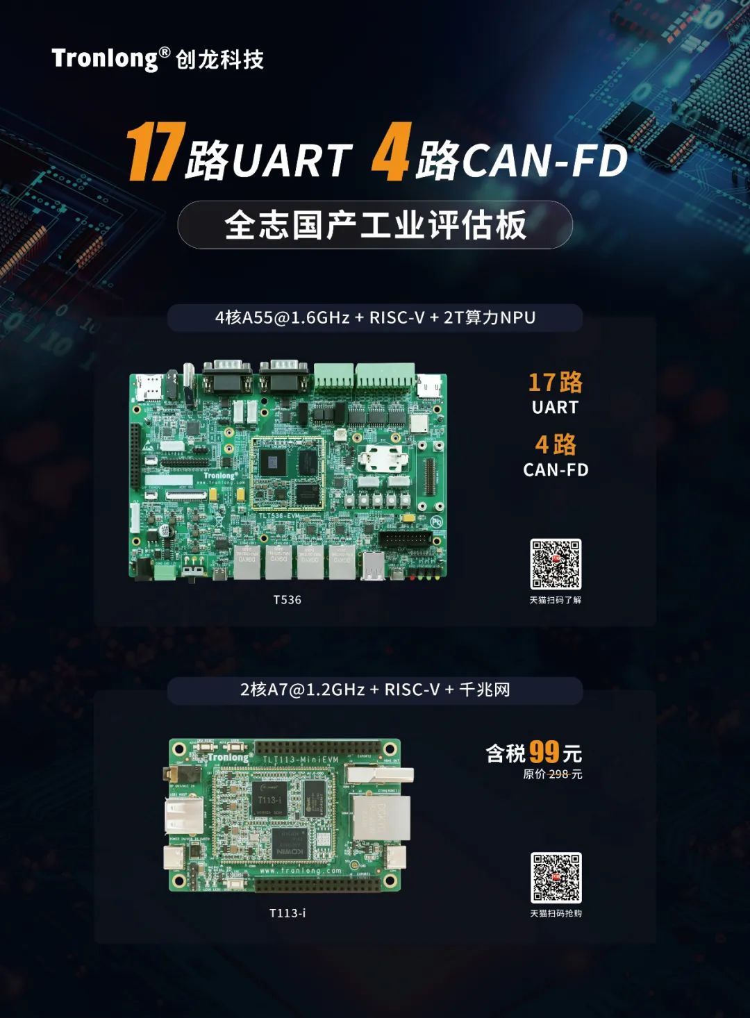 全志T536 inline ECC技術(shù)方案,能讓工業(yè)設(shè)備少點“意外”,能讓兄弟們少點“頭禿”,國產(chǎn)就是牛!為降低國產(chǎn)處理器的評估成本,創(chuàng)龍科技T536工業(yè)評估板限時優(yōu)惠600元!其實,T536還支持17路UART、4路CAN-FD,性價比直接拉滿!如需搶購,歡迎登錄創(chuàng)龍科技官方商城,或掃描下方二維碼!