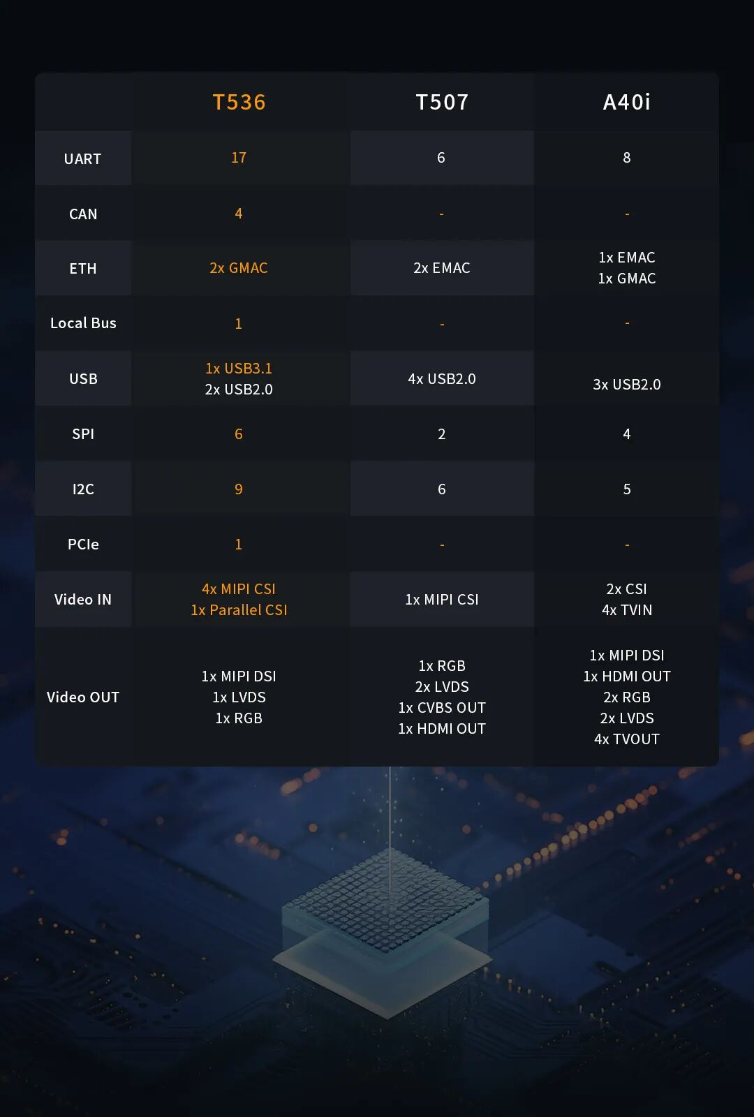 在實際應(yīng)用項目中,這三款處理器有何區(qū)別,用戶應(yīng)該如何選擇?今天,我們將通過全方位對比,深入剖析T536與T507/A40i處理器之間的關(guān)鍵區(qū)別,幫助您更好地根據(jù)項目具體需求,做出準(zhǔn)確選擇。下面,讓我們一起來看看。